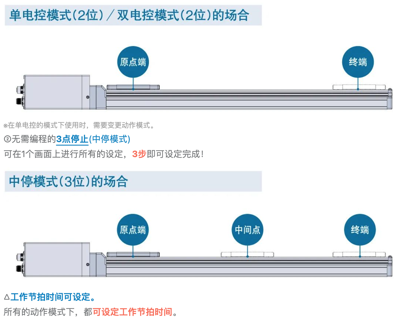 ①無需編程的2點停止(單電控模式/雙電控模式)